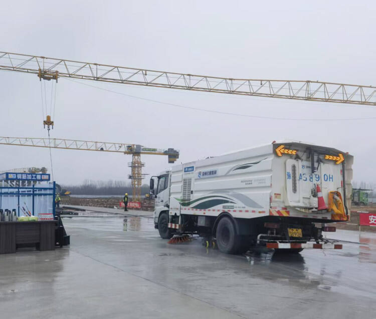 在施工现场,安全与规范贯穿始终。洒水车穿梭作业,保持场地湿润,有效抑制扬尘;施工人员身着反光背心、头戴安全帽,在各自岗位上精准操作,展现出专业的施工素养。