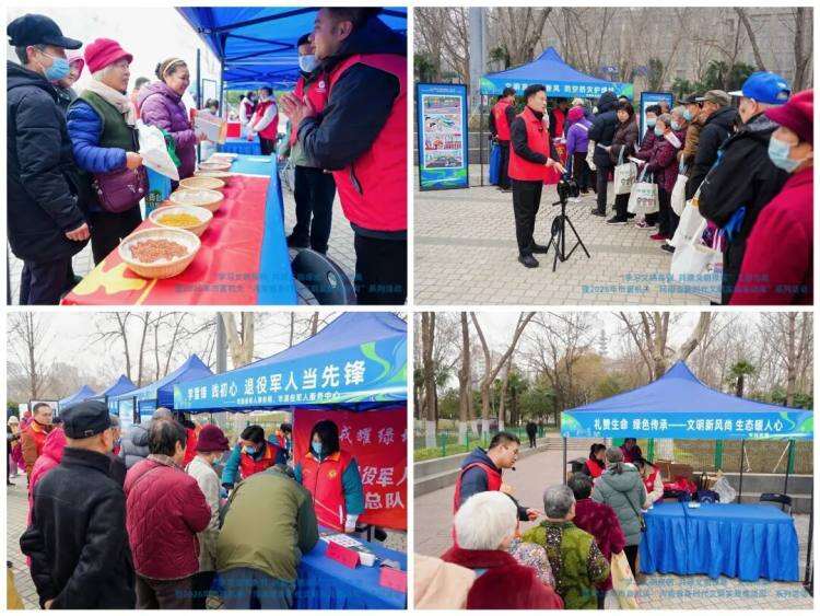 市红十字会志愿服务队,开展文明宣传、应急救护、法律科普一体化志愿服务,特别是由“中国好人”冯海河带领团队,连续五天开展“法佑救人 急救地摊”志愿服务,一对一指导市民练习心肺复苏、海姆立克急救法,并普及“好人法”知识,消除群众“不敢救”的顾虑。市退役军人事务局的“戎耀绿城”退役军人志愿服务队,联合解放军四六〇医院开展“学雷锋、践初心,退役军人当先锋”主题活动,医护人员为市民提供血压测量、血糖检测、急救知识讲授等健康服务;志愿者们细致讲解退役军人就业创业、优待抚恤等政策,展现退役军人退役不褪色的良好风貌,营造尊崇军人的浓厚氛围。
