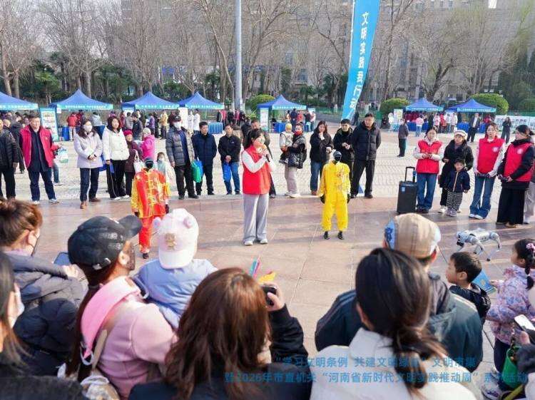 春风拂绿城,文明润心田。3月2日至6日,由市委直属机关工委、市文明办联合主办,市园林局、市公园广场事务中心协办的“学习文明条例 共建文明绿城”文明市集暨2026年市直机关“河南省新时代文明实践推动周”系列活动在绿城广场火热举行。活动期间,市委直属机关工委书记汤晓义、市委宣传部副部长汤理科、市委直属机关工委副书记张俊生、二级调研员乔成田等领导亲临现场,逐一走访各单位的志愿服务展位,与市民群众亲切互动,为志愿者的暖心服务点赞加油。