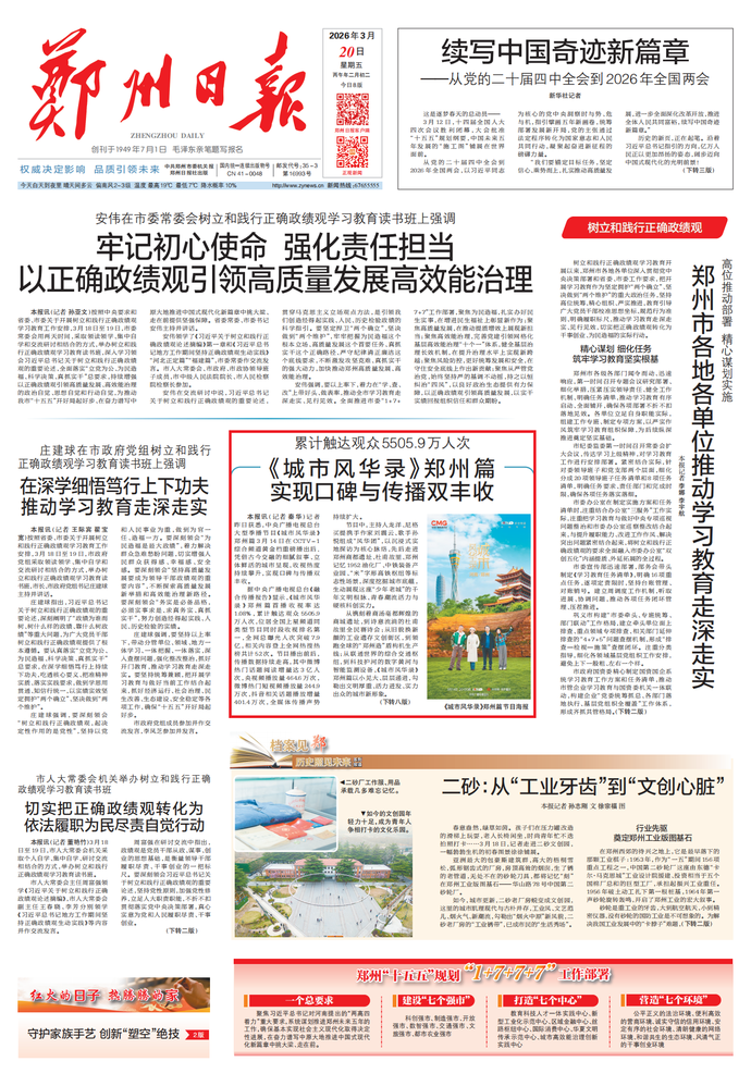记者昨日获悉,中央广播电视总台大型季播节目《城市风华录》郑州篇3月14日在CCTV-1综合频道黄金档重磅播出后,凭借古今交融的细腻叙事、立体鲜活的城市呈现,收视热度持续攀升,实现口碑与传播双丰收。