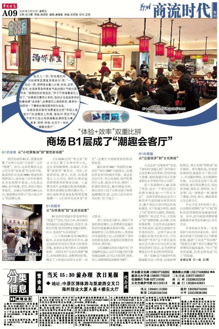 未来的商业竞争,一定是体验与效率的双重比拼。郑州商业的地下空间潜力正不断被挖掘,随着“小而美”“快而精”“刚需且有趣”“怀旧且潮流”的消费场景越来越多,“向下”要来的流量,自然会转变成“向上”的留量。