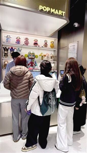 正弘城B1层泡泡玛特收银台前排起长队