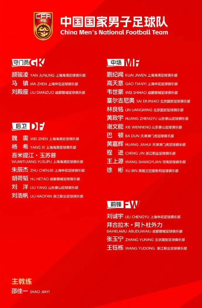 3月20日,中国足协公布最新一期国足集训名单,王钰栋、徐彬、刘浩帆等多名U23国足球员入选。在U23亚洲杯上表现出色的门将李昊因伤无缘本次集训名单。