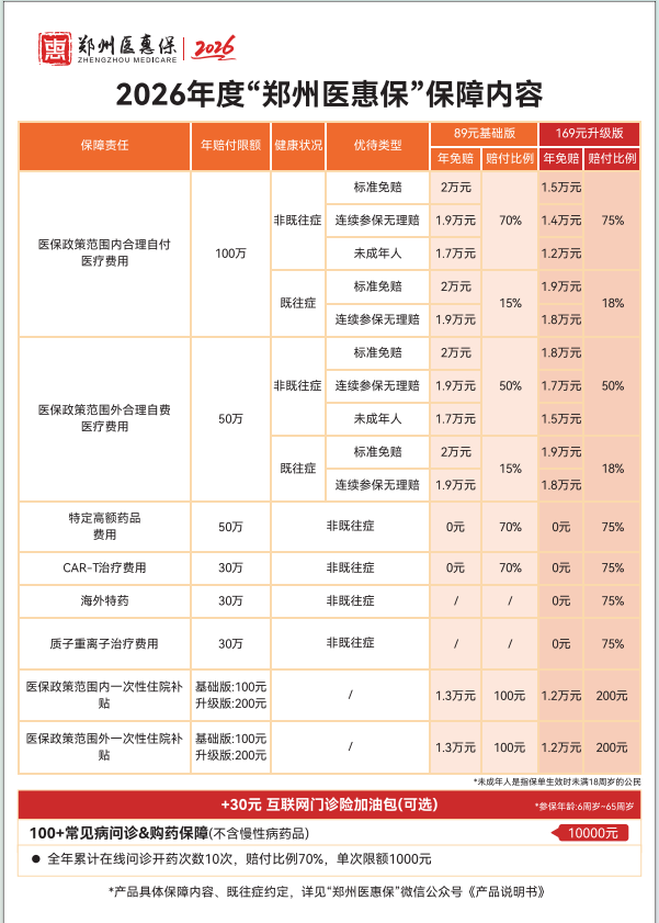 2026年度“郑州医惠保”核心亮点