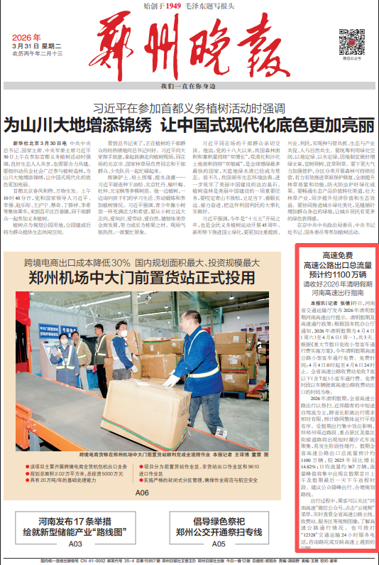 昨日,河南省交通运输厅发布2026年清明假期河南高速出行提示。清明假期及高速通行政策:根据国务院办公厅通知,2026年清明假期为4月4日(周六)至4月6日(周一),共3天。根据《重大节假日免收小型客车通行费实施方案》,今年清明假期高速公路小型客车通行免费。免费时间:4月4日0时起至4月6日24时止。全省高速公路收费站免收7座以下(含7座)小客车通行费。免费时段以车辆驶离高速公路收费站出口的时间为准。