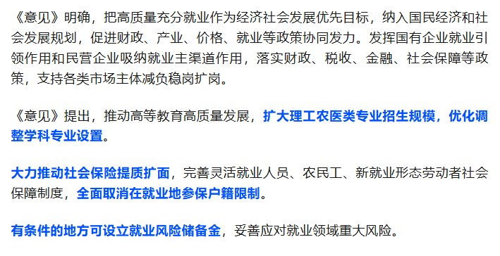 近日,中共河南省委、河南省人民政府印发《关于促进高质量充分就业的实施意见》,明确六大重点任务,构建全方位就业保障体系。