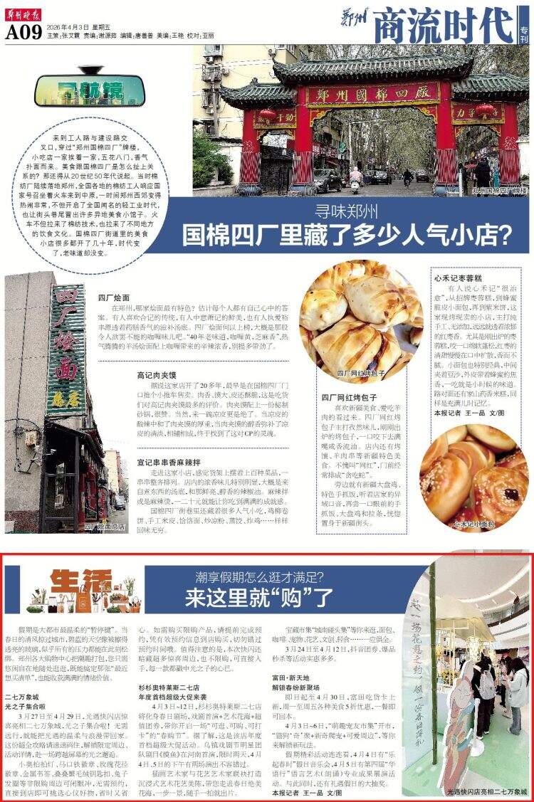 假期是大都市最温柔的“暂停键”。当春日的清风掠过城市,碧蓝的天空像被擦得透亮的玻璃,似乎所有的压力都能在此刻松绑。郑州各大购物中心把潮趣打包,您只需悠闲自在地随处逛逛,既能搞定那张“最近想买清单”,也能收获满满的情绪价值。