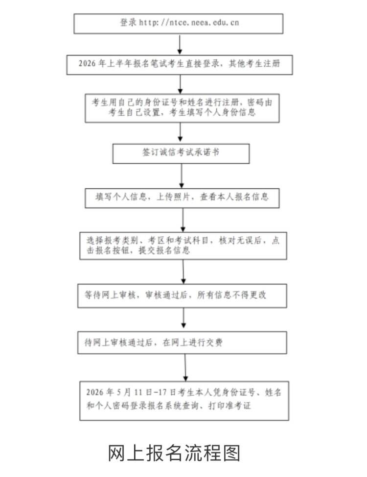 2026年上半年中小学教师资格考试(面试)网上报名时间为4月17日10:00至20日17:00,网上审核4月21日17:00截止,网上缴费4月22日24:00截止。