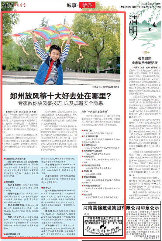 郑州都有哪些适合放风筝的好去处?放风筝时该掌握哪些技巧,又要规避哪些安全隐患?针对市民关心的问题,记者采访了河南省风筝协会会员、郑州市民协风筝艺委会主任邢广连。这位深耕风筝领域、熟悉本地放飞场地的专业人士,结合多年经验,带来了全面又实用的春日放风筝全攻略,为市民安全畅享春光保驾护航。