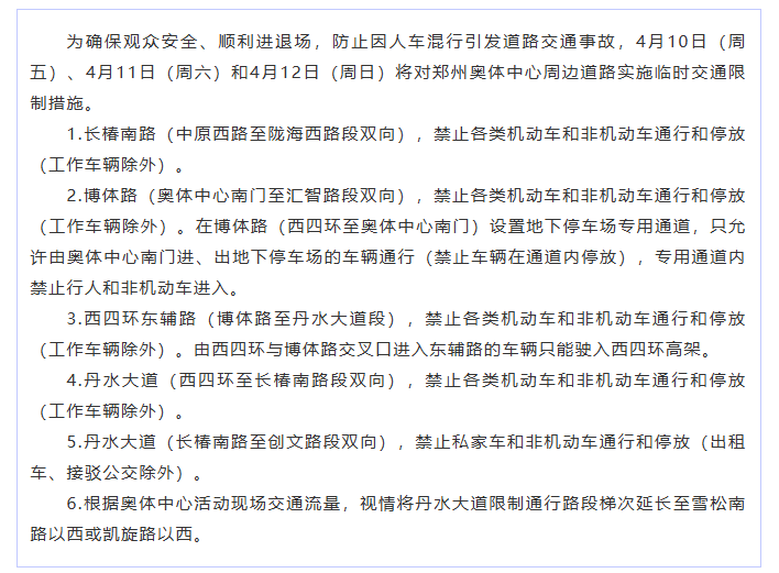 凤凰传奇「吉祥如意」2026巡回演唱会-郑州站将于4月10日至12日每天19:00(本周五、六、日)在郑州奥林匹克体育中心体育场举行;ONER「万能派对Chill Party(轻松派对)」巡回演唱会-郑州站将于4月11日19:00(本周六)在郑州奥林匹克体育中心体育馆举行,郑州交警发布出行提示: