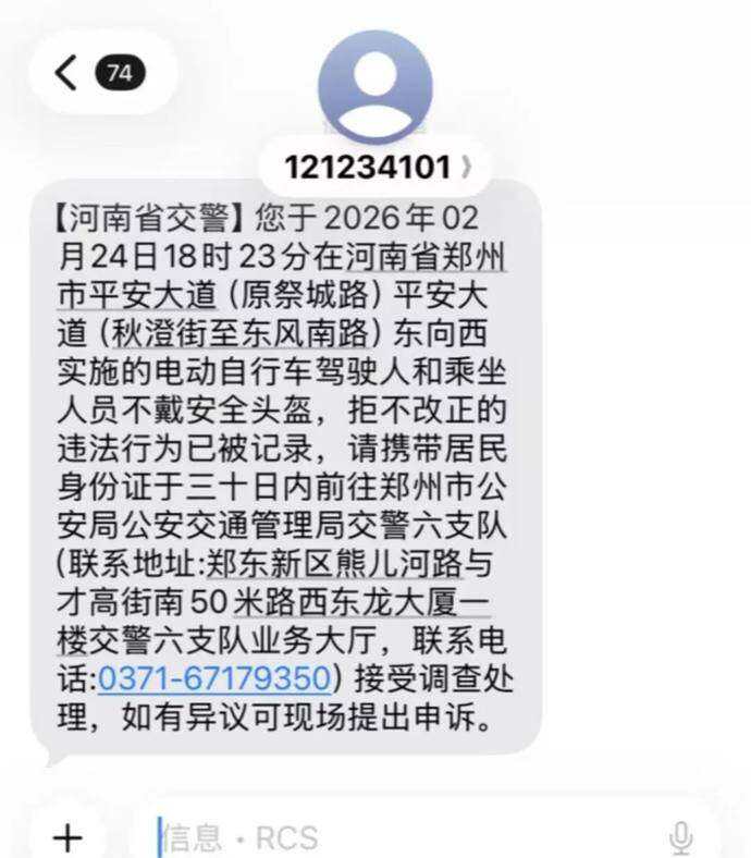 同时,系统通过人脸识别比对锁定当事人,自动留存证据,并通过“河南交警”短信精准推送违法告知,列明违法事实、法律依据和处理地点,引导当事人主动接受处理。
