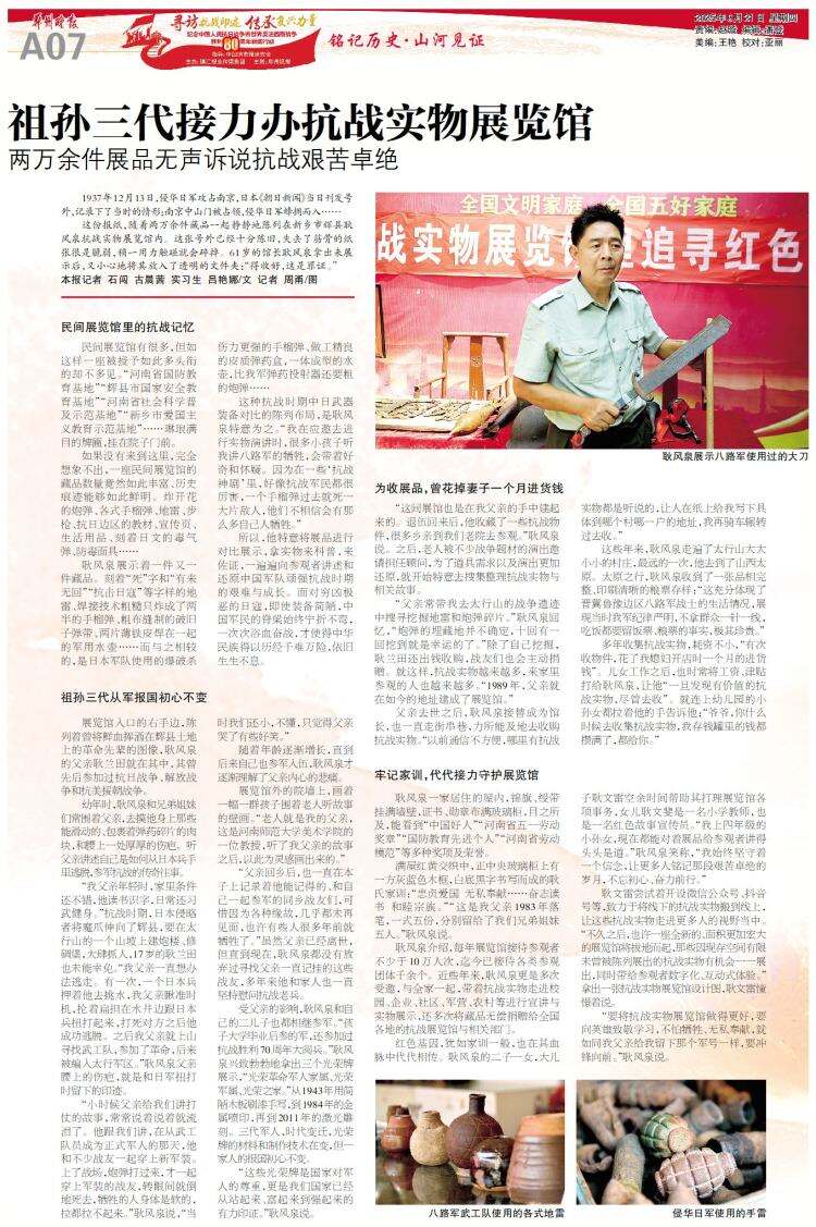 寻访抗战印迹 传承复兴力量丨祖孙三代接力办抗战实物展览馆
