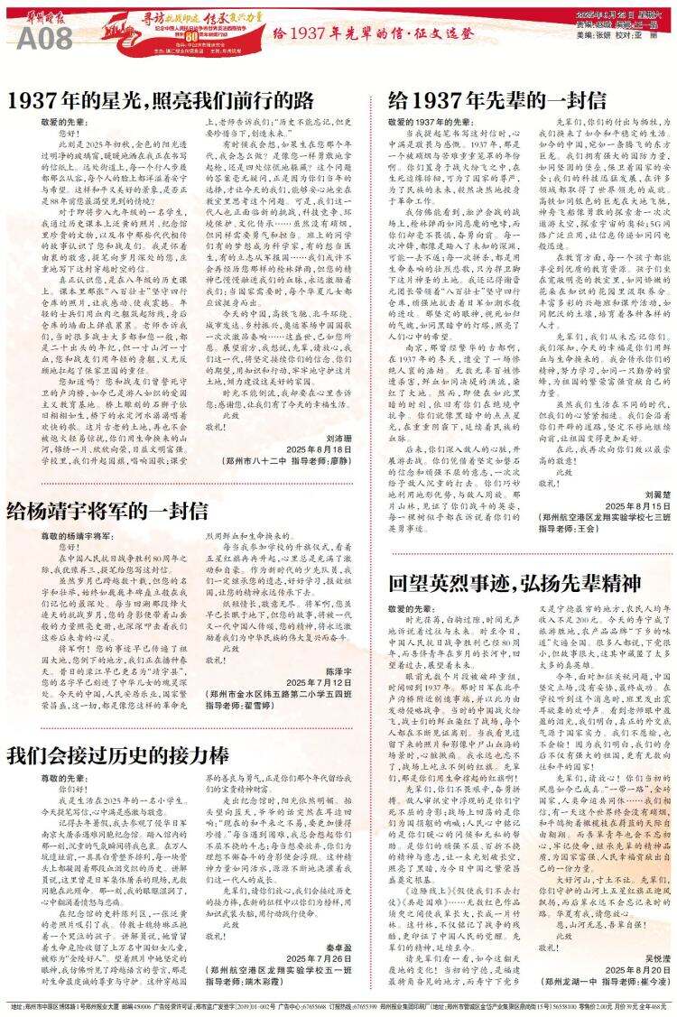 寻访抗战印迹 传承复兴力量丨 给1937年先辈的信·征文选登