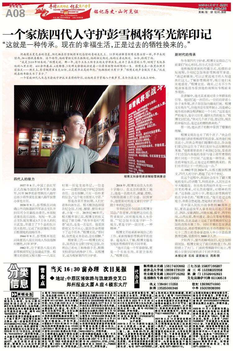 寻访抗战印迹 传承复兴力量丨一个家族四代人守护彭雪枫将军光辉印记