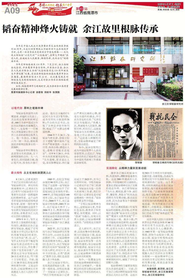 寻访抗战印迹 传承复兴力量丨韬奋精神烽火铸就 余江故里根脉传承